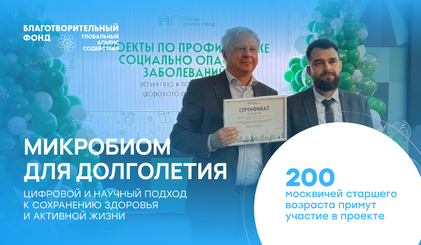 Наш Благотворительный фонд «Глобальный Альянс Содействия» получил грант 9 млн рублей на реализацию проекта «Микробиом для долголетия»!